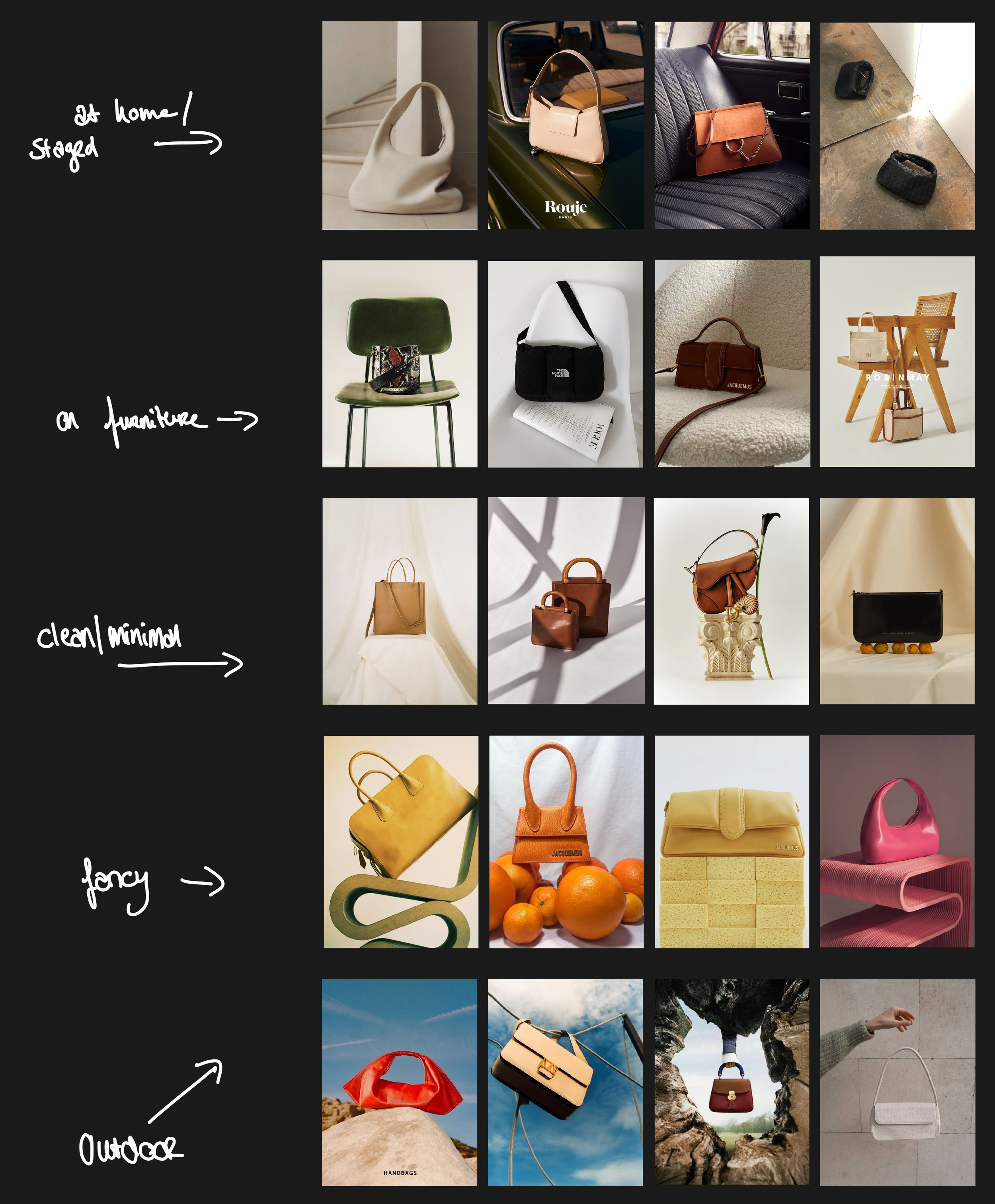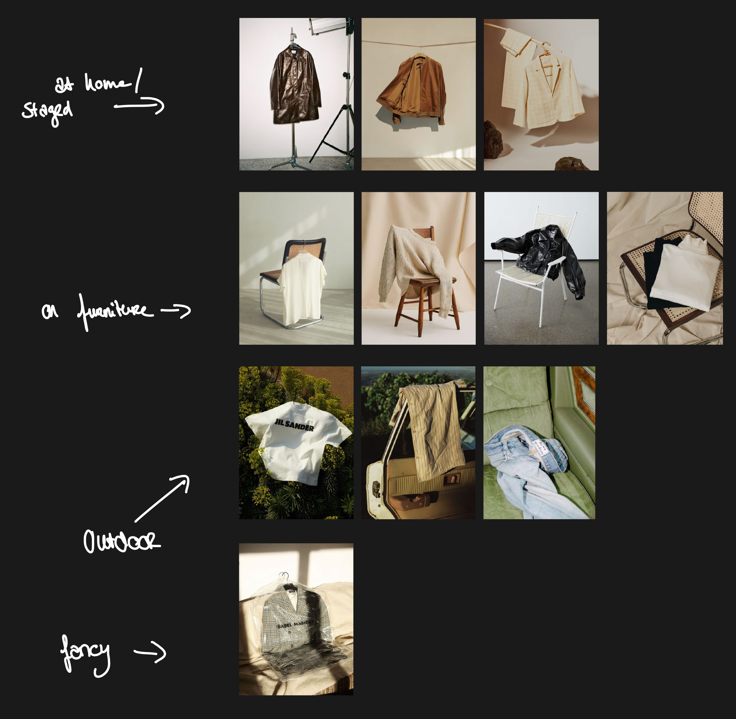Moodboard Preloved Plattform—Highfashion Define Client Requirements and Project Goals—Research—Visual Concept—Prompting—Selecting Images—Visual Direction Categories 01—clothing 02—bags 03—Accessoires 04—shoes